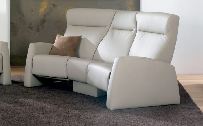 Trapezsofa mit manueller cumuly funktion in den beiden aussensesseln ablagetisch in mittelteil.
